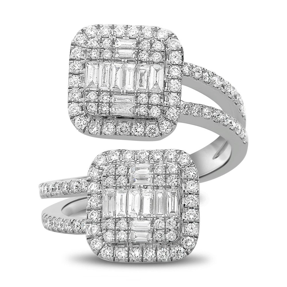 14KT White Gold Wrap Around Baguette & Round Diamond Ring with Split Shank, BG: 0.44ct., RD: 0.78ct t.w., Size 7