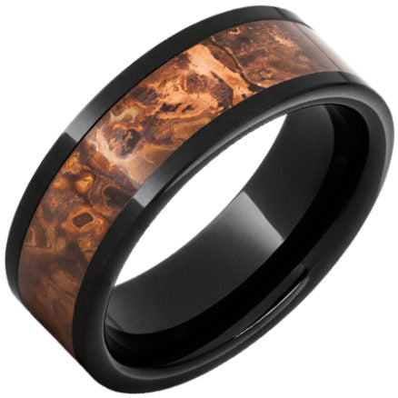 8mm Black Ceramic Pipe Cut Band with a 5mm Distressed Copper Inlay, Size 10