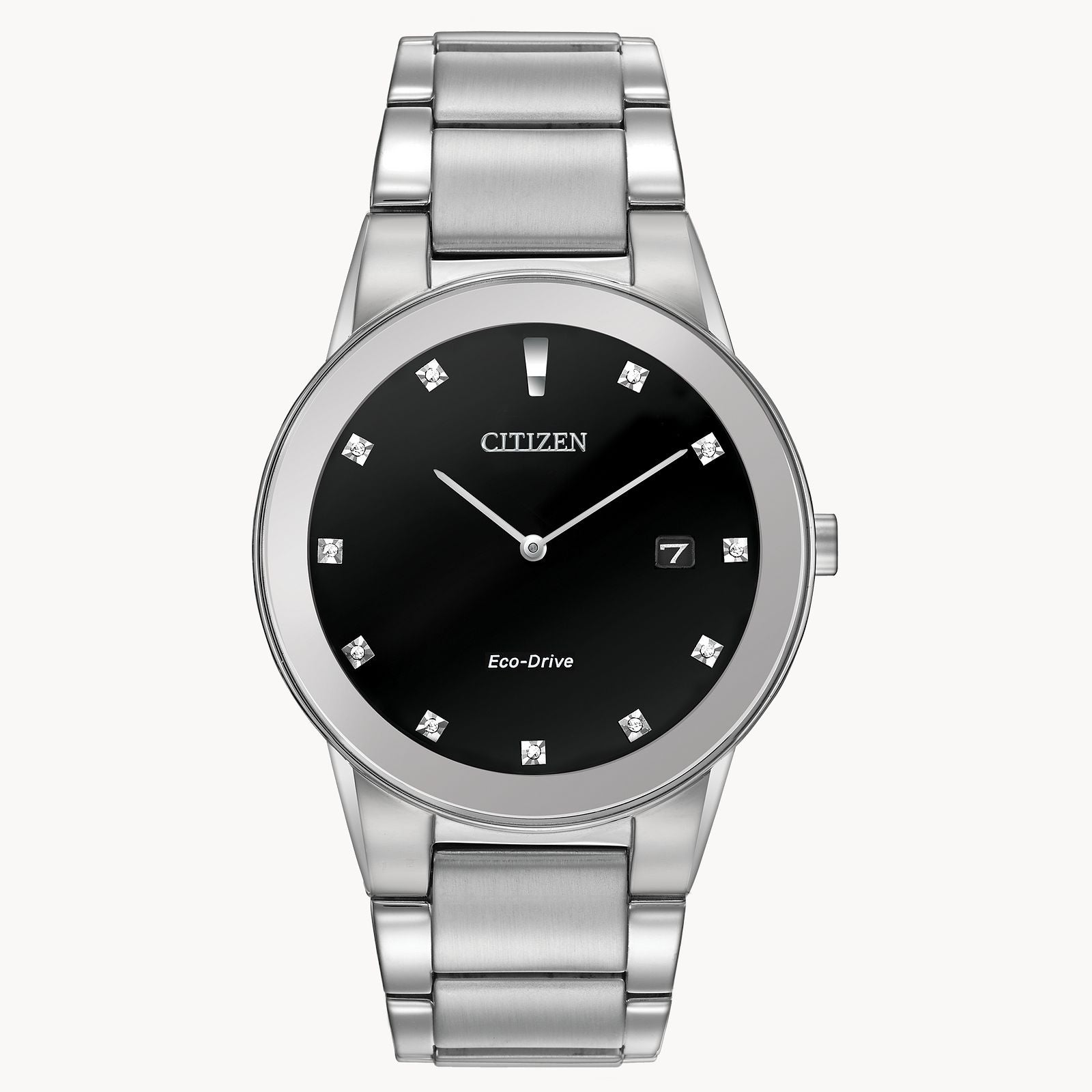 CITIZEN - AXIOM - Men's Stainless Steel Eco-Drive Watch with Black Dial, Edge-to-Edge Crystal, Diamonds on Dial, Date Display & WR (Splash Resistant)