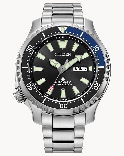 CITIZEN - PROMASTER DIVE AUTOMATIC - Men's Stainless Steel Automatic Diver's Watch with Black Dial, Black & Blue Rotating Bezel, Luminous Hands & Markers, Day/Date Display, Sapphire Crystal & Water Resistant to 200M/20Bar [Scuba Diving]