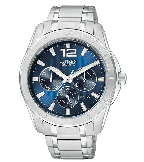 CITIZEN - QUARTZ - Men's Stainless Steel Quartz Watch with Blue Dial, 12/24 Hour Time, Day/Date Feature & 100M Water Resistant