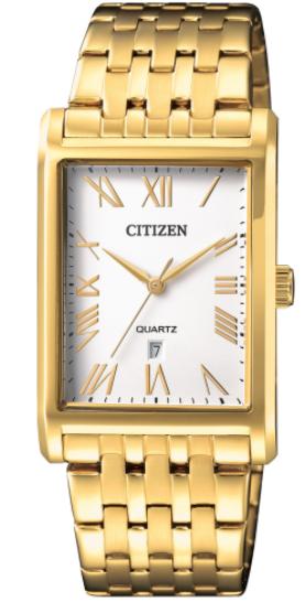 CITIZEN - Men's Gold-Tone Stainless Steel Quartz Watch w/White Dial, Window Date Display & Water Resistant to 50 Meters