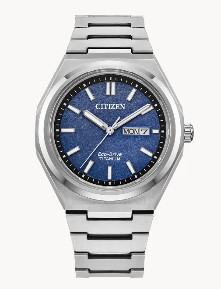 CITIZEN - ZENSHIN - Men's Titanium Eco-Drive Watch with Blue Dial, Window Day/Date Display, Sapphire Crystal, Fold Over Clasp with Push Buttons & WR100/10Bar/333ft [Swimming, Showering & Snorkeling]