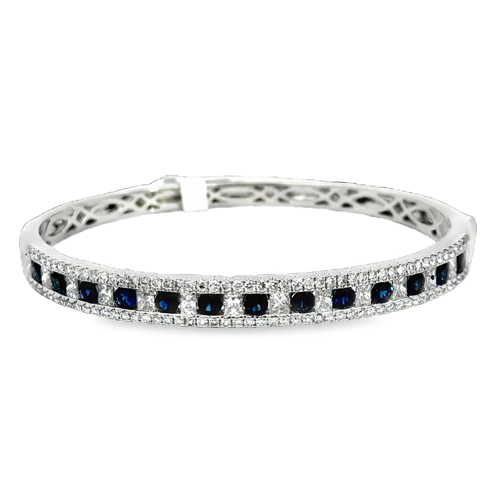 14KT White Gold Blue Sapphire & Diamond Bangle Bracelet, SA: 1.80ct., Dia: 3.25ct t.w., G-VS