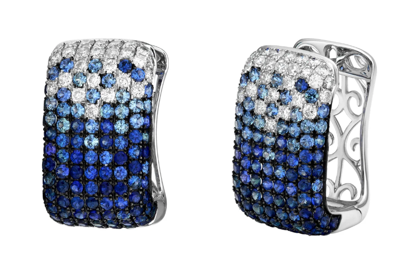 Ruchi - 18KT White Gold Blue Sapphire & Diamond Hoop Earrings, SA: 2.41ct., Dia: 0.62ct t.w.
