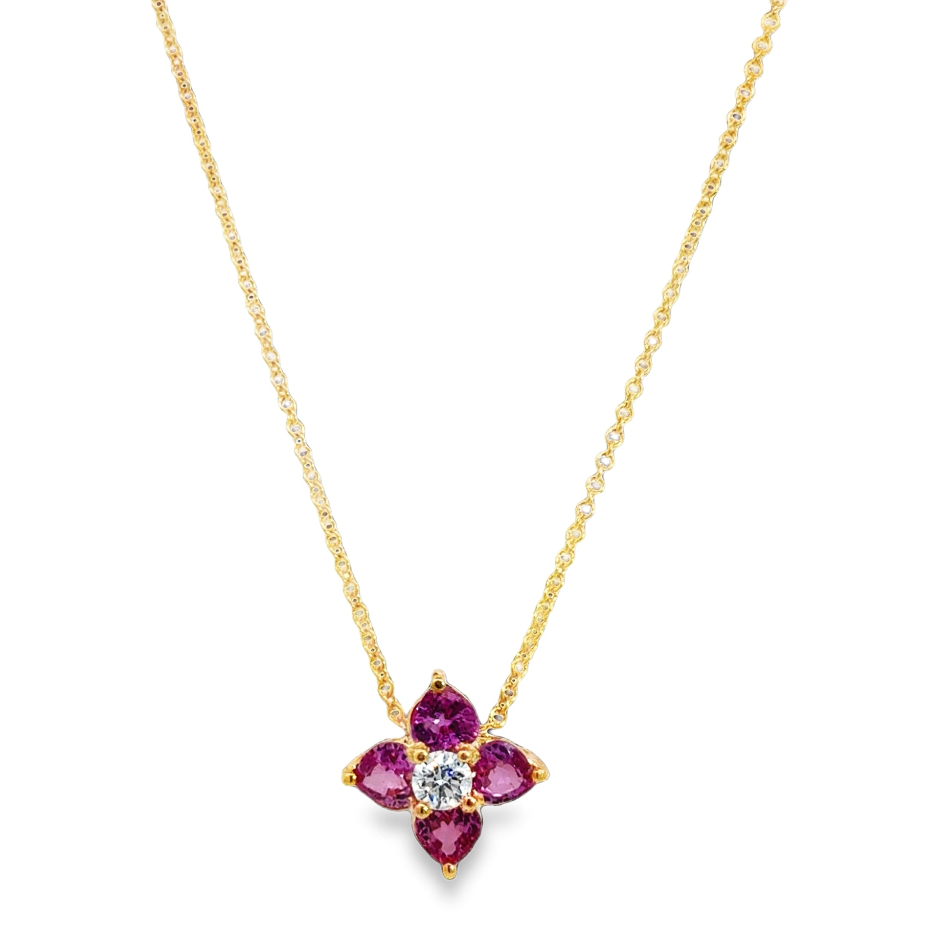14KT/18KT Yellow Gold 16" Pink Sapphire & Diamond Necklace, PS: 1.50ct., Dia: 0.20ct t.w.
