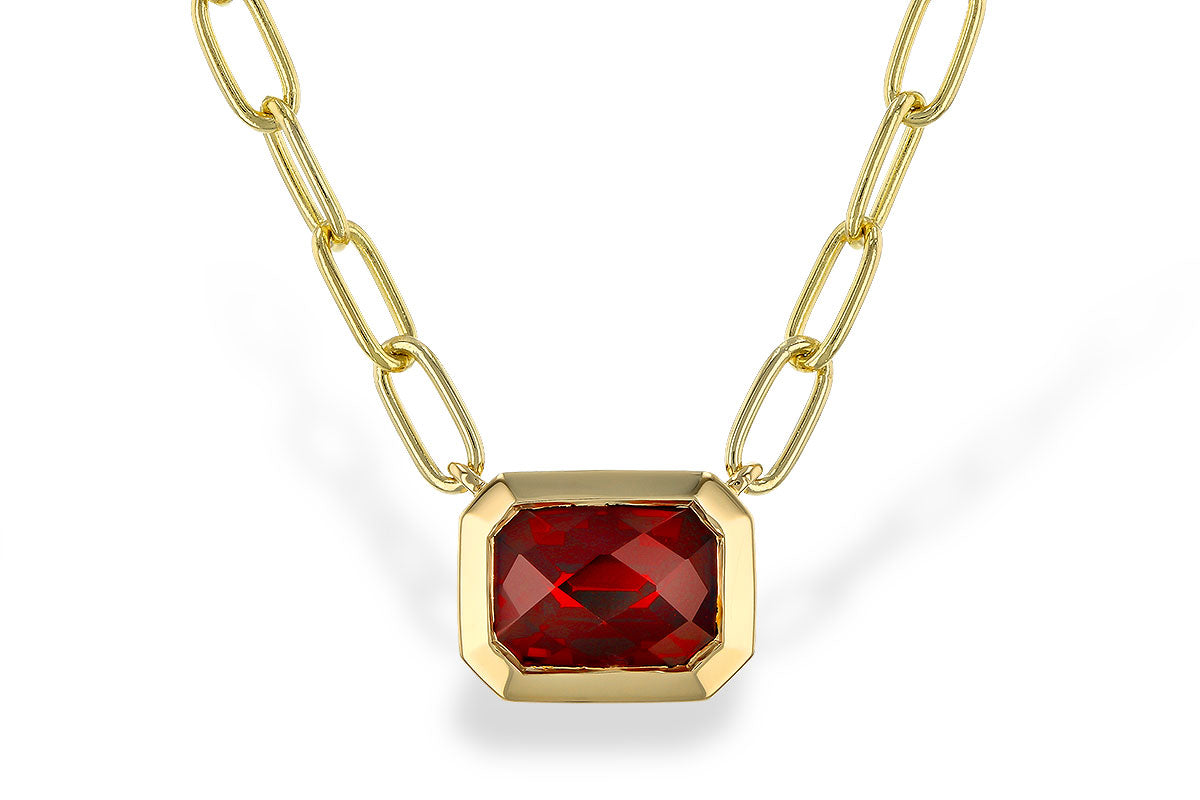 14KT Yellow Gold Radiant Shaped Garnet Paper Clip Necklace, GA: 1.45ct. t.w.