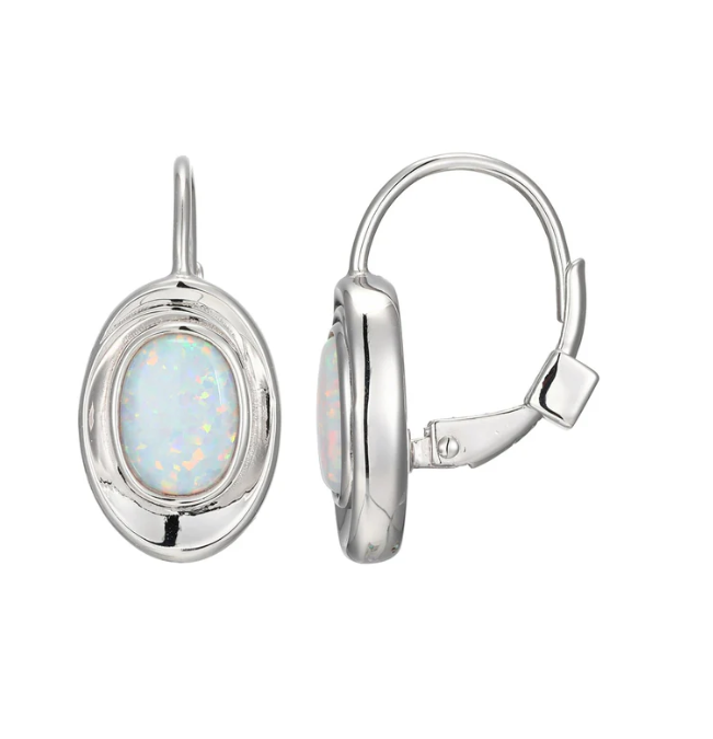 ELLE - Swirl Collection - Sterling Silver Rhodium Plated Created Opal Drop Earrings