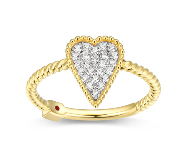 ELLE - Long Love Collection - Sterling Silver & Yellow Gold Rhodium Plated CZ Heart Shaped Ring, Size 7