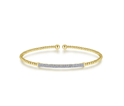 Gabriel & Co - Bujukan Collection - 14KT Yellow Gold 6" Bujukan Diamond Bar Split Bangle, Dia: 0.33ct t.w., Serial No: S2215804