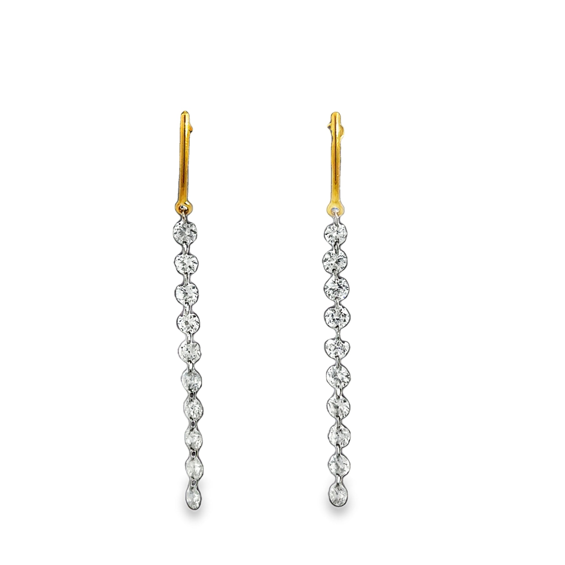 Aresa - 18KT Yellow Gold Diamond Streamer Post Earrings, Dia: 1.63ct t.w.