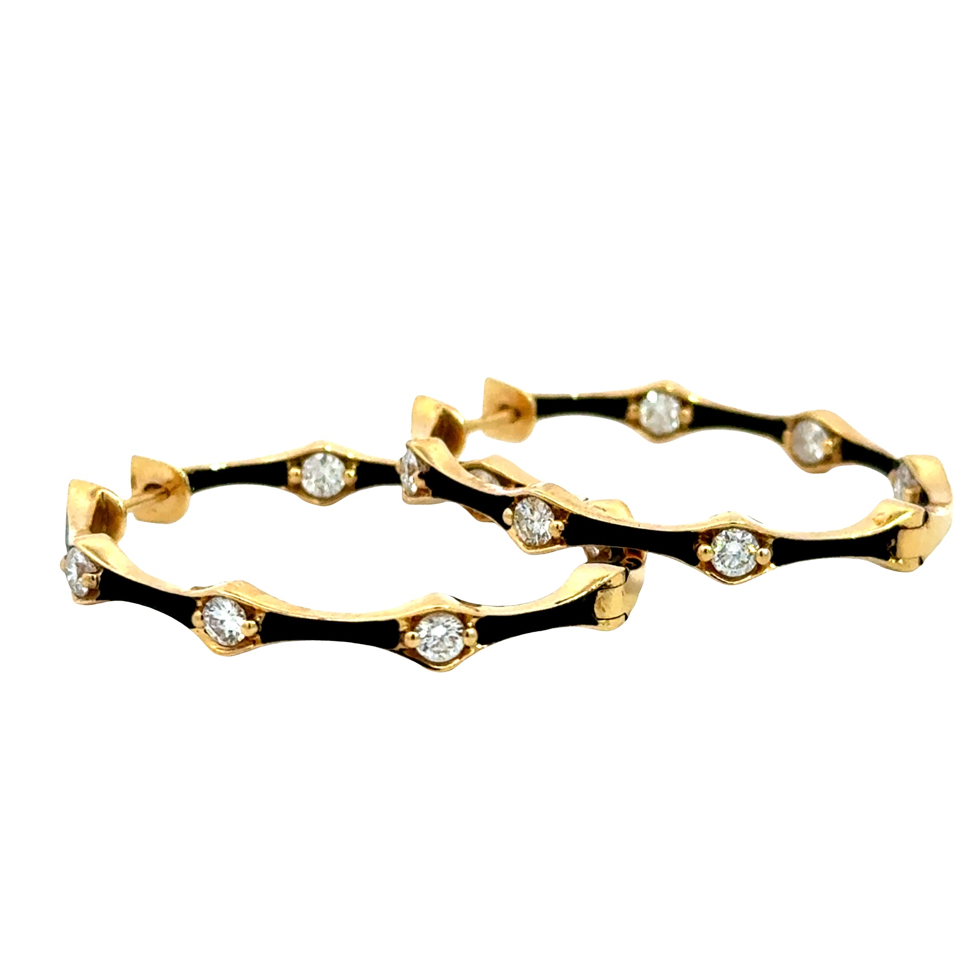 Ruchi - 18KT Yellow Gold Black Enamelled Inside-Out Diamond Hoop Earrings, Dia: 1.09ct t.w.