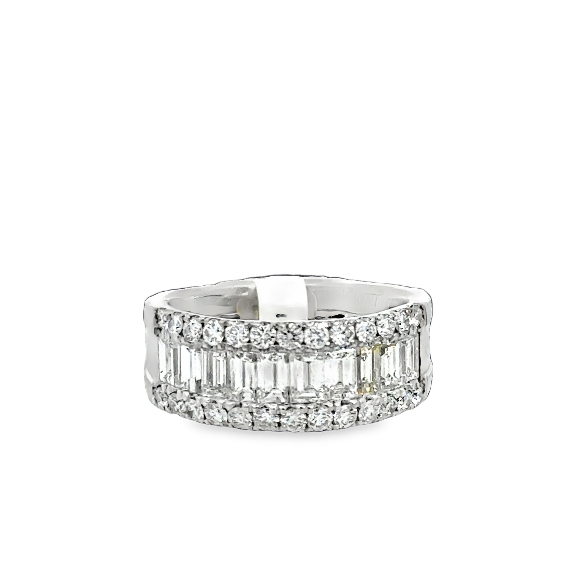18KT White Gold Bsguette & Round Diamond Band, Dia: 2.25ct t.w., G-VS, Size 6.75
