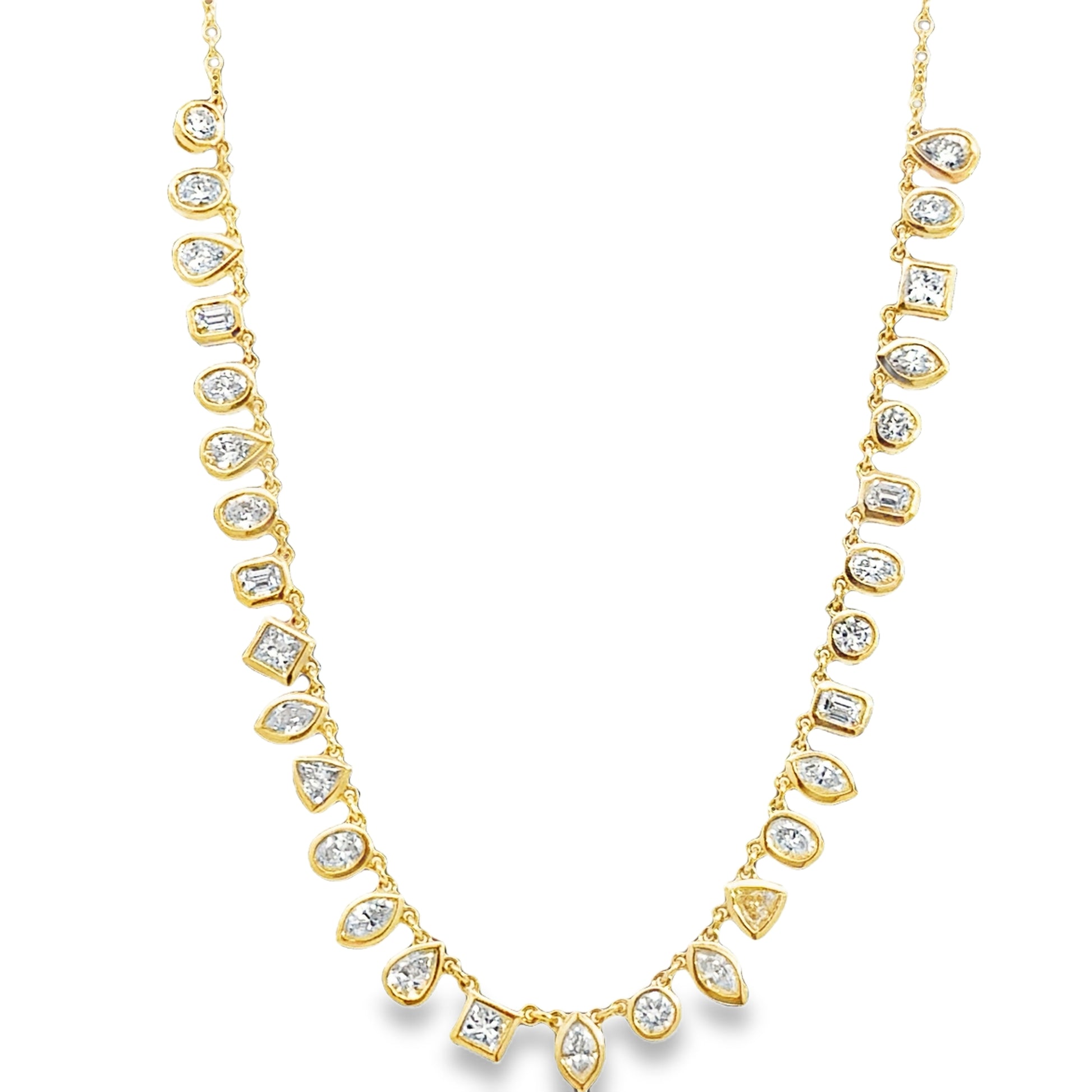 Ruchi - 18KT Yellow Gold 18" Fringe Mix Shaped Bezel Diamond Necklace, Dia: 2.91ct t.w.