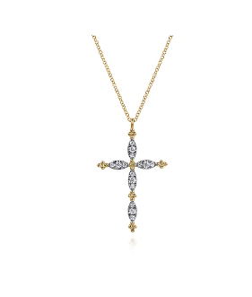 Gabriel & Co - Bujukan Collection - 14KT Yellow Gold 17.5" Bujukan Diamond Cross Pendant Necklace, Dia: 0.35ct t.w., Serial No: S2252553