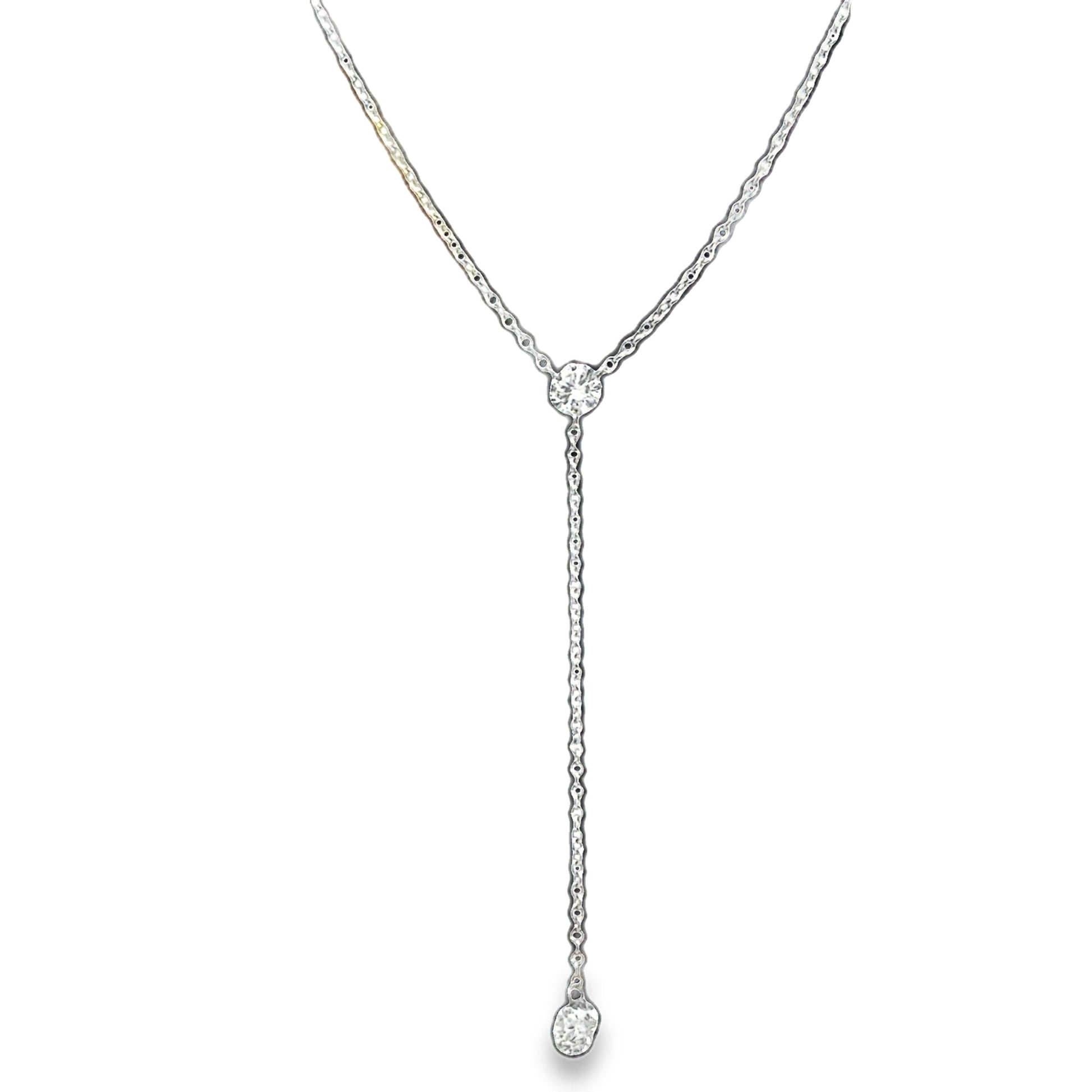 Aresa - 18KT White Gold Two Stone Diamond Y-Shaped Necklace, Dia: 0.42ct t.w.