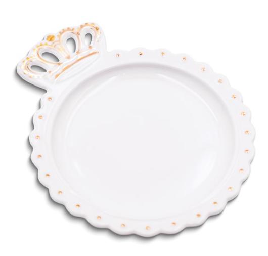 White & Gold-Tone Crown Ceramic Circle Trinket Dish