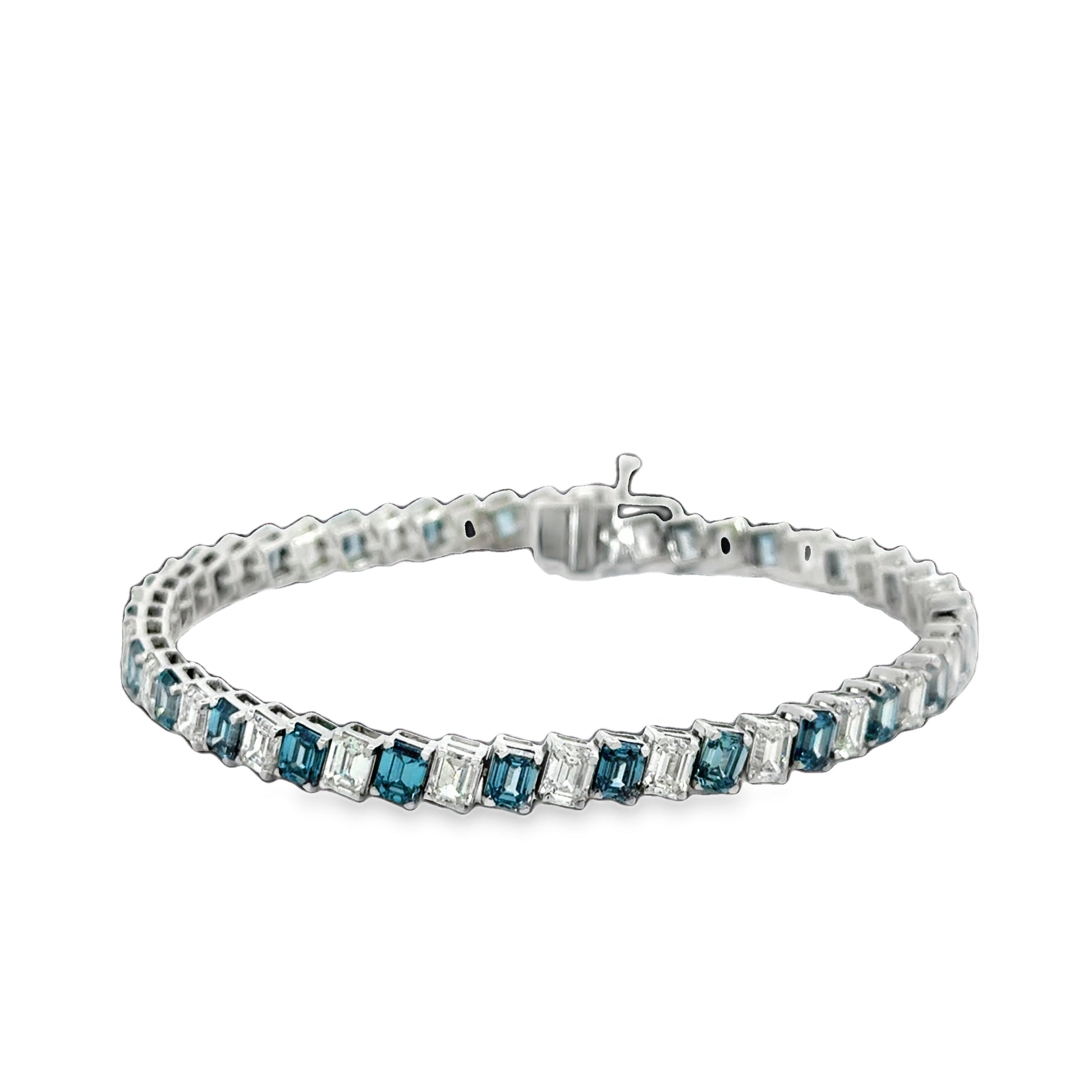 14KT White Gold 7" Lab Grown Blue & White Diamond Tennis Bracelet, LG Dia: 12.38ct t.w., E-VVS
