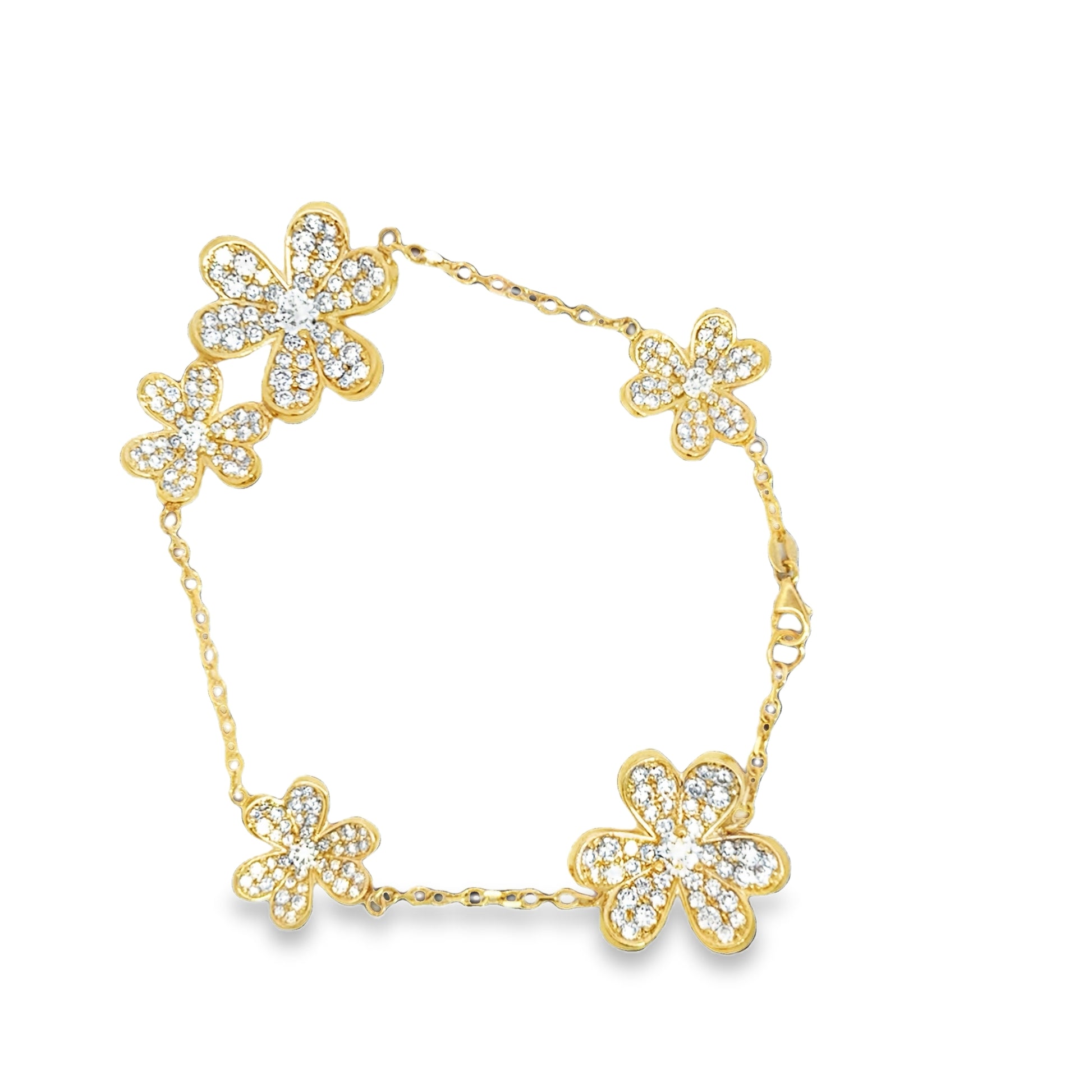 14KT Yellow Gold 8" Lab Grown Flower Shaped Diamond Bracelet, LG Dia: 5.41ct t.w., F-VS