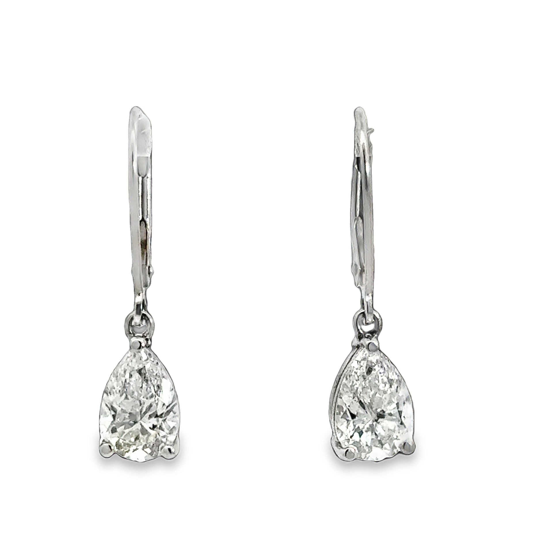 14KT White Gold Lab Grown Pear Shaped Diamond Dangle Earrings, PS Dia: 2.65ct .w., E-VS1-VS2, IGI: LG685554315 & LG656400106
