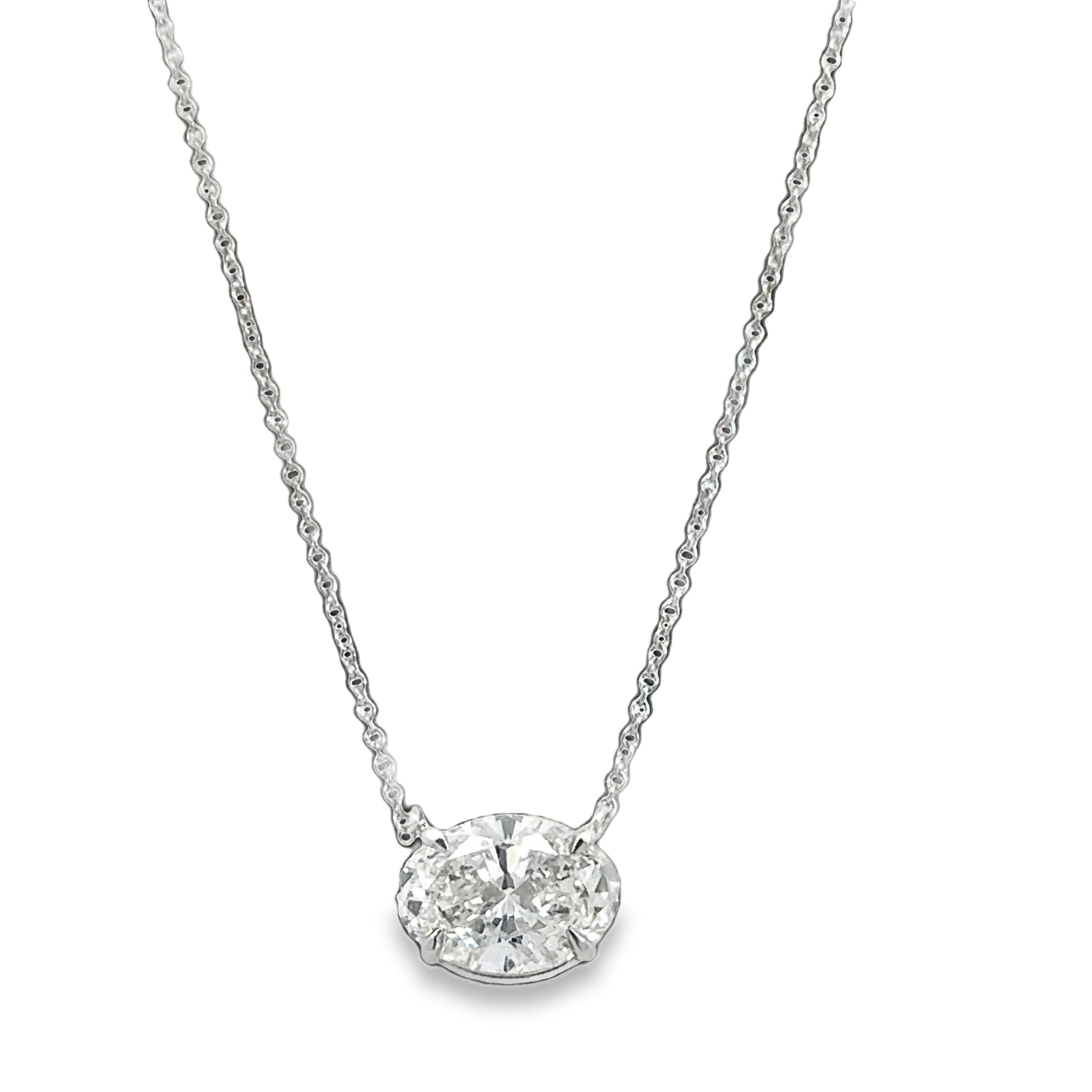14KT White Gold 16" Lab Grown Oval Shaped Diamond Sideways Necklace, Dia: 3.06ct t.w., E-VS1, IGI: LG668437355