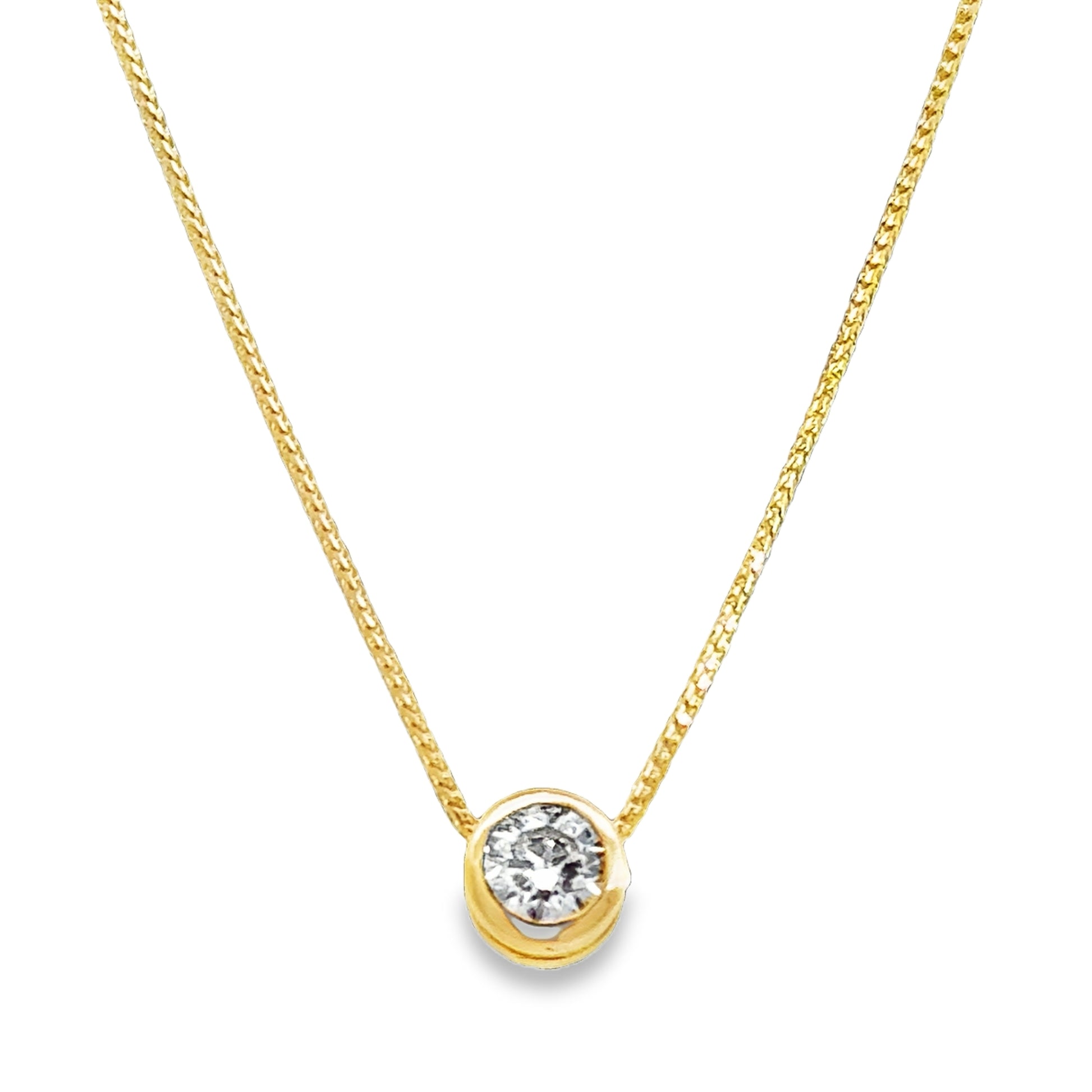 14KT Yellow Gold Lab Grown Bezel Set Round Diamond Pendant Slider with 16" Chain, LG Dia: 0.42ct t.w., F-VS2