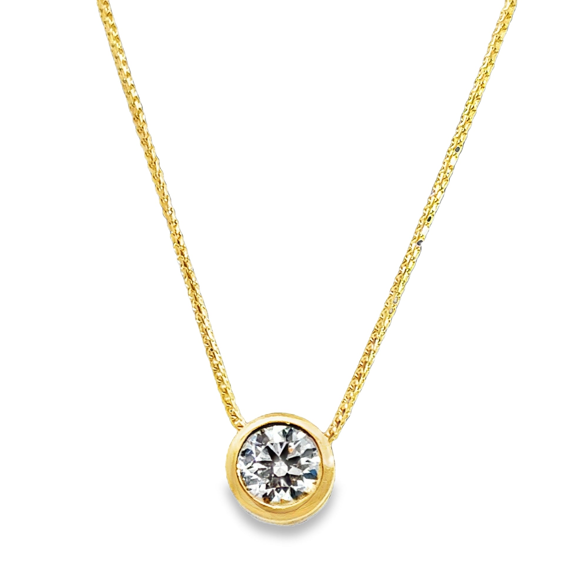 14KT Yellow Gold Lab Grown Diamond Bezel Perndant on 16" Franco Chain, LG Dia: 0.74ct t.w., E-VS1, IGI: LG725501200