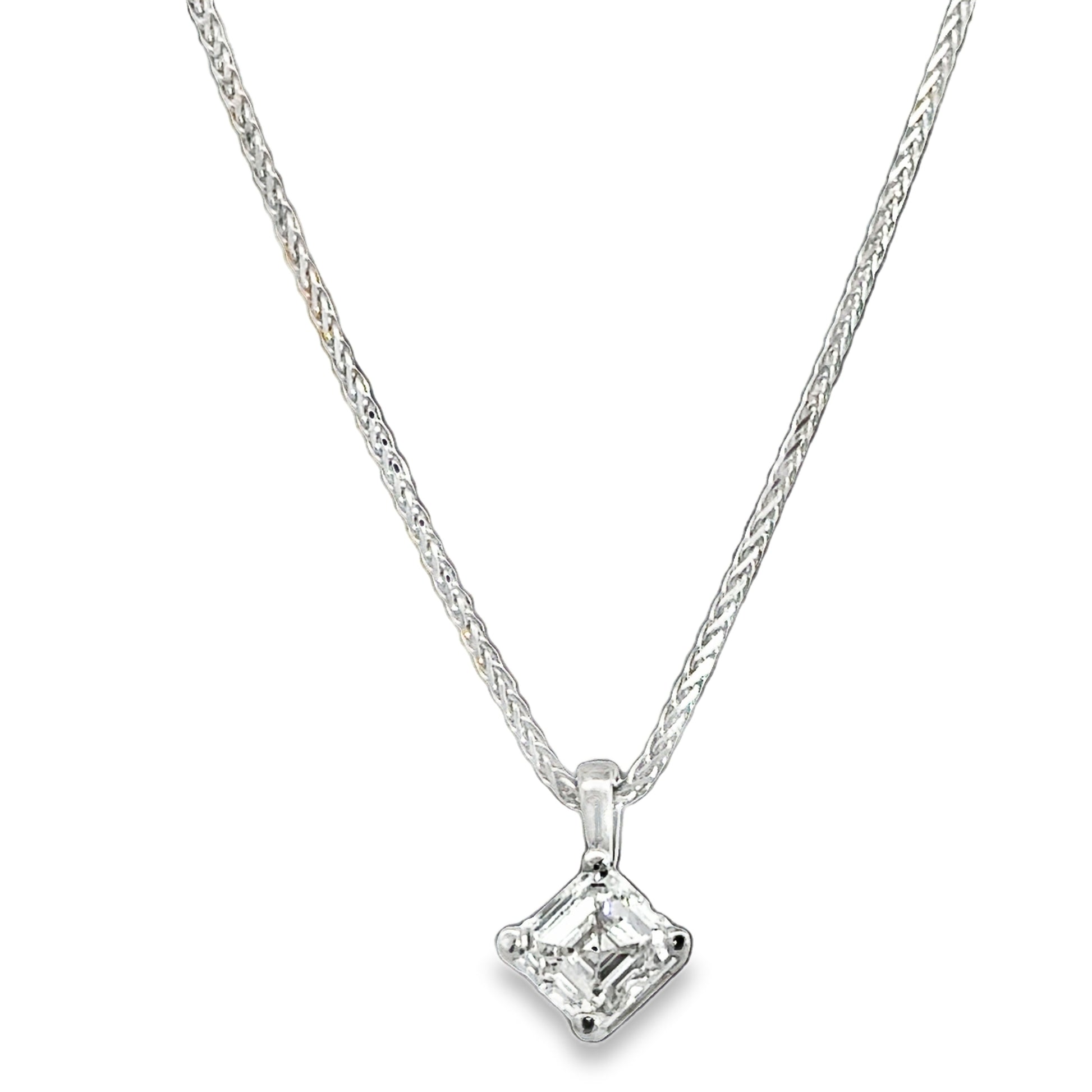14KT White Gold Lab Grown Asscher Cut Diamond Pendant with 16" Chain, Dia: 0.90ct t.w., E-VS1, IGI: LG700506698