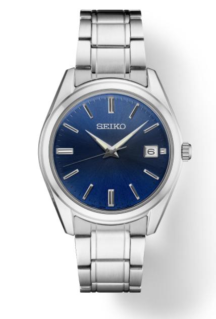 SEIKO - ESSENTIALS - Men's Stainless Steel Quartz Watch with Sunray Finish Blue Dial, Sapphire Crystal, LumiBrite Hands, Date Calendar & Water-Resistant to 10 Bar, 100 Meters (330 Feet)