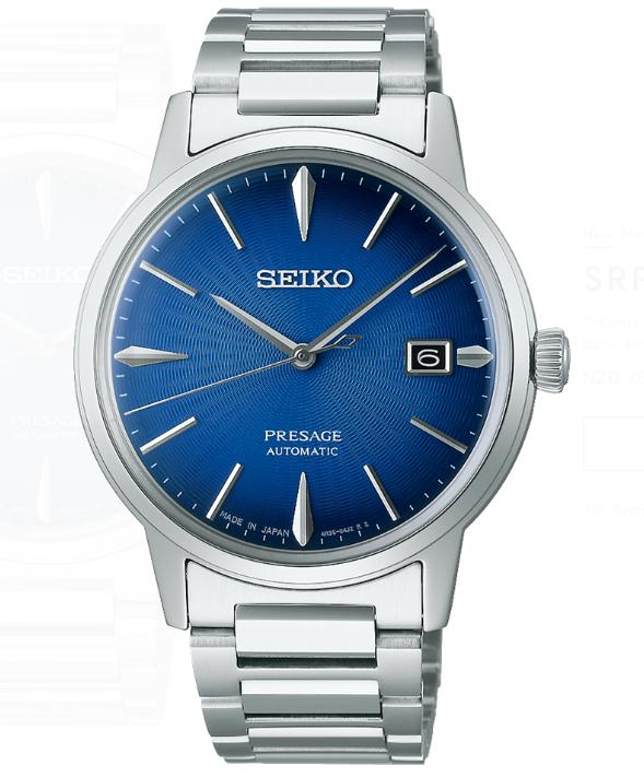 SEIKO - PRESAGE - Men's Stainless Steel Automatic with Manual Winding Watch with Graduated Blue Dial, Date Calendar, Silver Hands, Markers & Accents, Box-Shaped Hardlex Crystal, Deployment Clasp with Push Button Release, Screwdown See-Through Caseback & 5 Bar, 50M Water Resistant, Power Reserve: Approximately 41 Hours