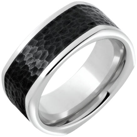 6mm Serinium® Square Band with Hammered Black Ceramic Inlay, Size 10