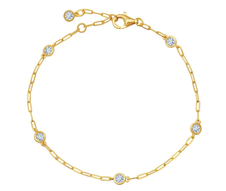 Sterling Silver 9.5"-10.5" Paper Clip Bezel Set CZ Anklet Finished in 18KT Yellow Gold - 0.80ct t.w.