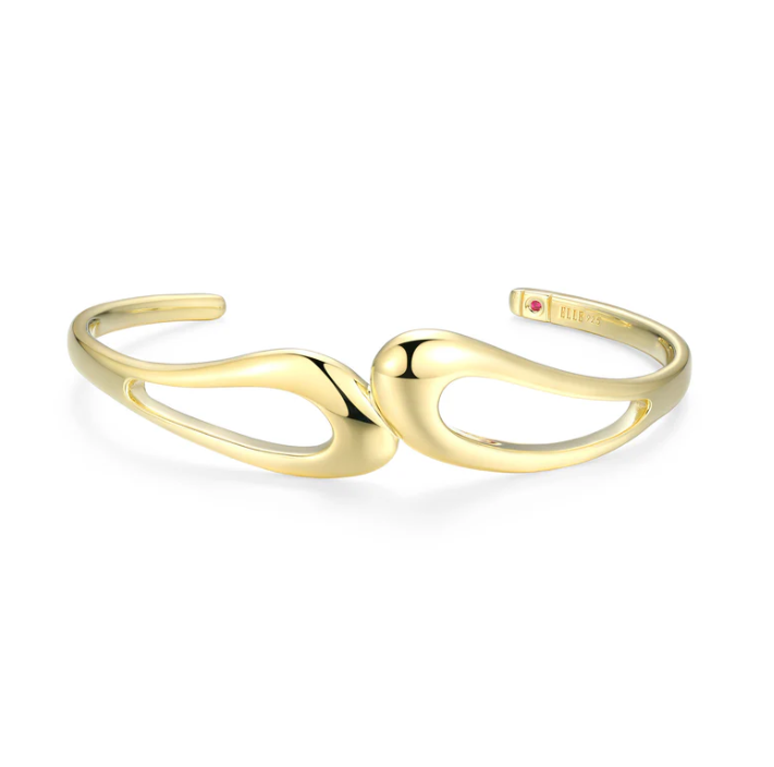 ELLE - Oasis Collection - Sterling Silver & Yellow Gold Rhodium Plated Cuff Bangle Bracelet