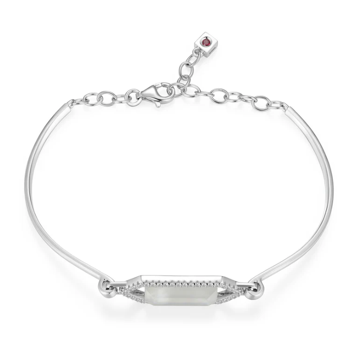 ELLE - Fancy Collection - Sterling Silver Rhodium Plated Mother of Pearl & CZ Bracelet