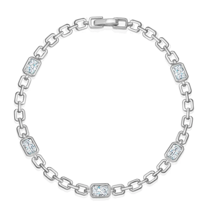 Sterling Silver 7" Radiant Shaped CZ Link Bracelet Finished in Pure Platinum, 2.50ct t.w.