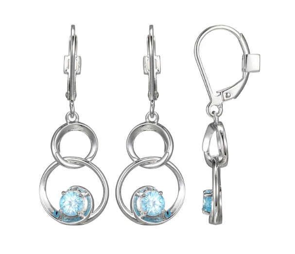ELLE - Swirl Collection - Sterling Silver Rhodium Plated Genuine Blue Topaz Dangle Earrings