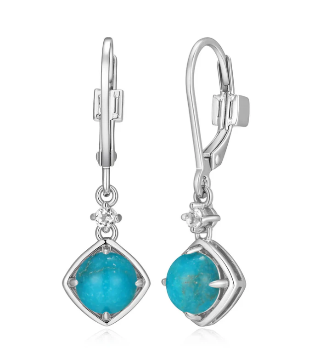 ELLE - Sway Collection - Sterling Silver Rhodium Plated Stabilized Turquoise & White Topaz Leverback Earrings