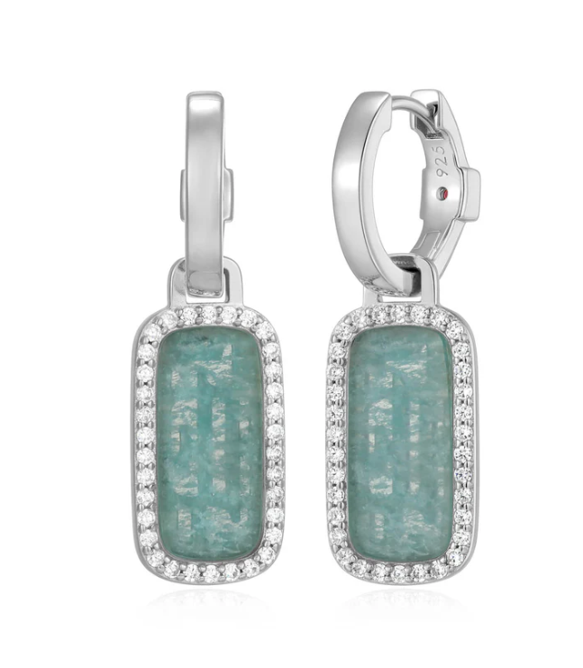 ELLE - Allure 2.0 Collection - Sterling Silver Rhodium Plated Amazonite & CZ Hoop Earrings