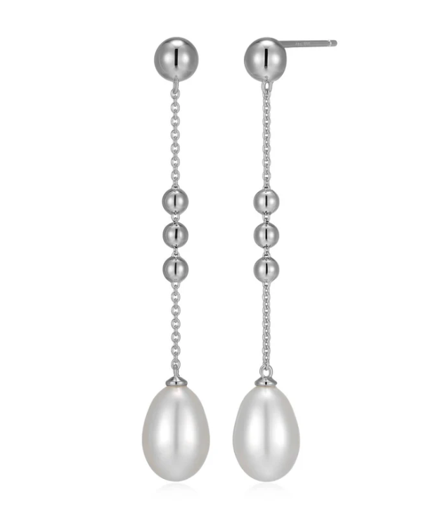 ELLE - Genesis Collection - Sterling Silver Rhodium Plated Geniune Pearl Dangle Earrings