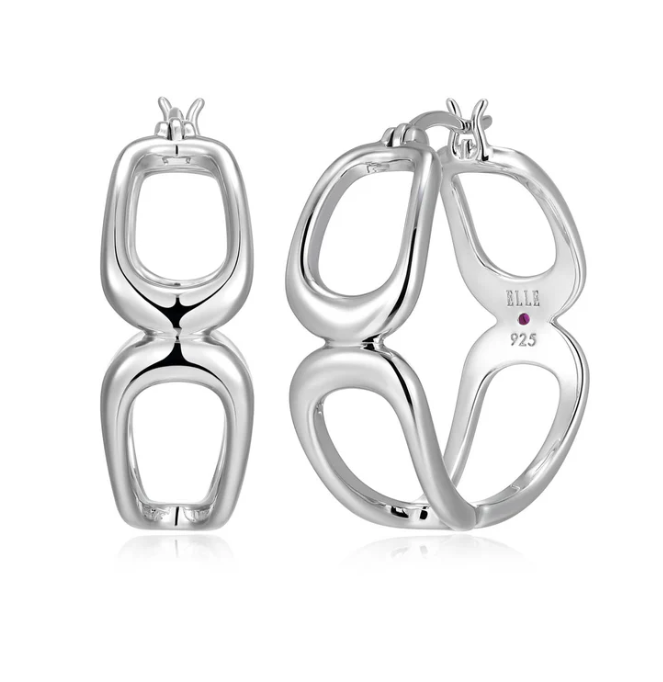 ELLE - Citadel Collection - Sterling Silver Rhodium Plated Hoop Earrings