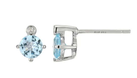 ELLE - Birthstone Collection - Sterling Silver Rhodium Plated Genuine Sky Blue Topaz & Lab Grown Diamond Stud Earrings