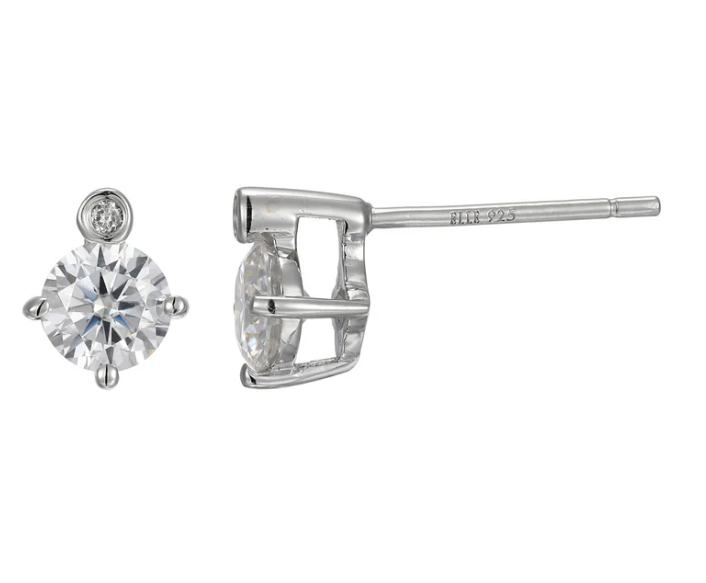 ELLE - Birthstone Collection - Sterling Silver Rhodium Plated Genuine Moissanite & Lab Grown Diamond Stud Earrings