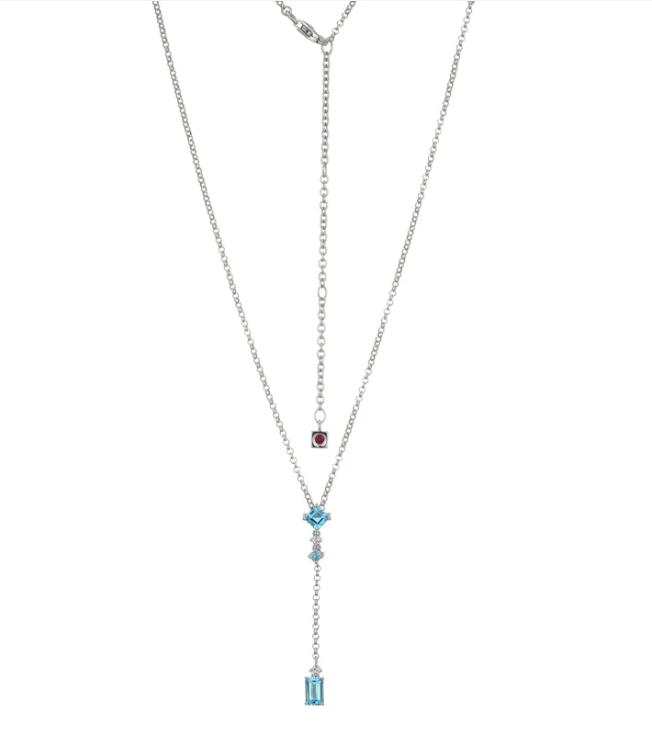 ELLE - Sway Collection - Sterling Silver Rhodium Plated 17"+3" Swiss Blue Topaz & White Topaz Necklace