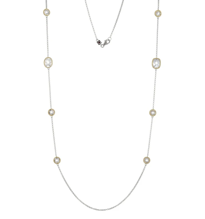 ELLE - Essence Collection - Sterling Silver & Yellow Gold Rhodium Plated 36" Faceted CZ Station Necklace