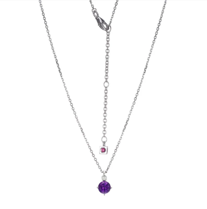 ELLE - Birthstone Collection - Sterling Silver Rhodium Plated 17"+2" Genuine African Amethyst & Lab Grown Diamond Necklace