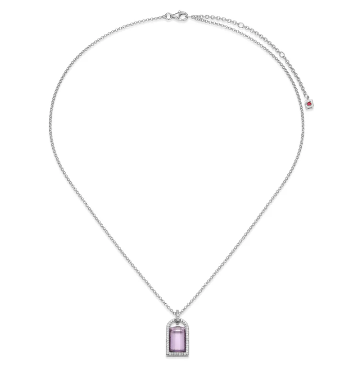 ELLE - Fancy Collection - Sterling Silver Rhodium Plated 17"+3" Iris African Amethyst Doublet & CZ Pendant Necklace