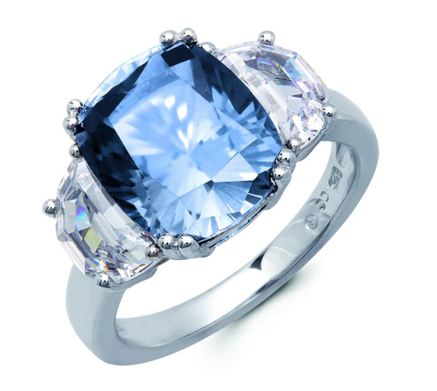 Sterling Silver Blue Quartz & CZ Cocktail Ring Finished in Pure Platinum - 11.90ct., Size 8