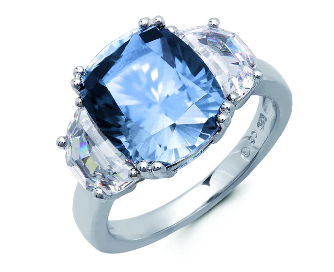Sterling Silver Blue Quartz & CZ Cocktail Ring Finished in Pure Platinum, 11.90ct t.w., Size 6