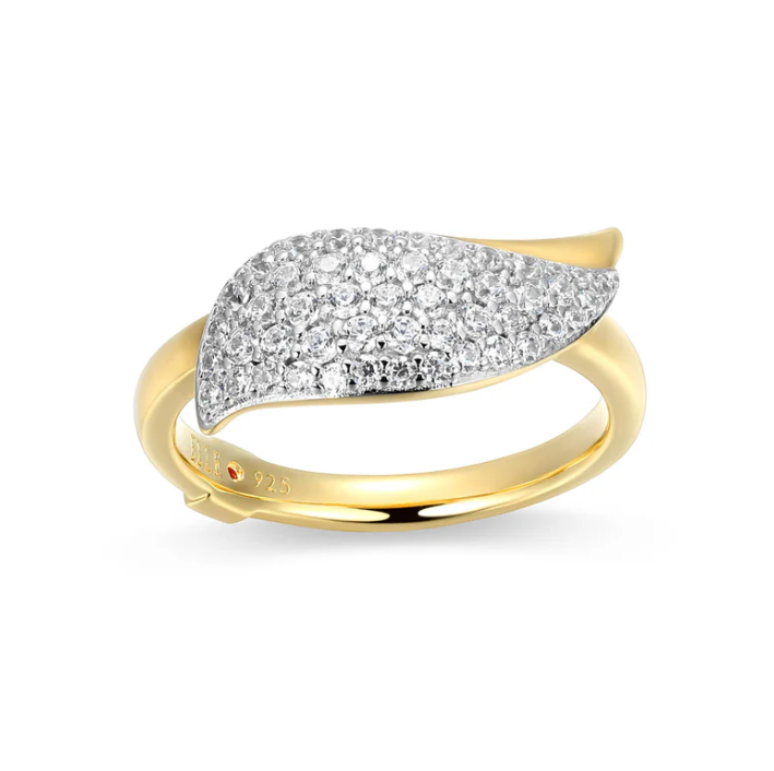 ELLE- Amour Collection - Sterling Silver & Yellow Gold Rhodium Plated CZ Ring, Size 7