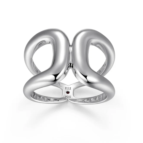 ELLE - Citadel Collection - Sterling Silver Rhodium Plated Ring, Size 7